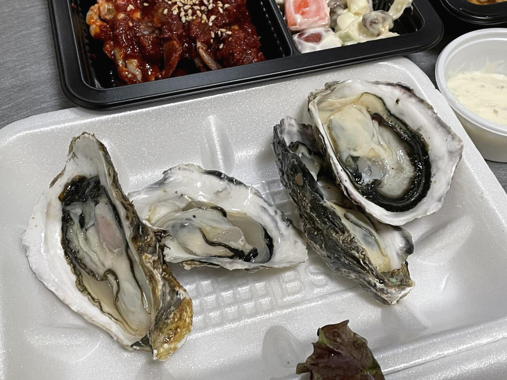 주문하고 포장을 벗기기전 사진입니다. 벌서부터 포스가 남다릅니다. 가격은 기억이 안나는데 연어초밥을 추가하고 회는 중짜리를 시켜서 4~5만원 나왔던걸로 기억합니다. 리뷰이벤트로 댓글써준다고하고 석화굴 추가로 받았습니다.