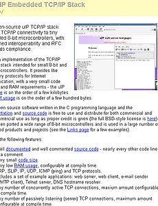 uip1 UIP( micro ip ) The open-source uIP TCP/IP stack provide TCP/IP connectivity to tiny embedded 8-bit microcontrollers, with maintained interoperability and RFC standards compliance. uIP is an implementation of the TCP/IP protocol stack intended for small 8-bit and 16-bit microcontrollers. It provides the necessary protocols for Internet communication, with a very small code footprint and RAM requirements - the u.. 2012. 2. 17. 이전 1 다음 반응형